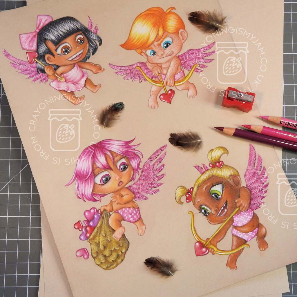 Happy Galentine’s Day! I’ve been busy colouring up some cherubs to share today for celebrating those great friends I appreciate! This is Margaret, Hikaru, Lola and Billy from Elvi Studio in their cherub format or “querubin” format, cos I am learning that Spanish hard atm 😀