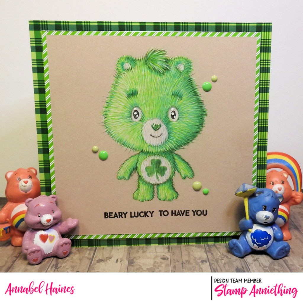 So here is my card! I went GREEN cos it’s a double whammy combo card, St.Patricks Day vibes and also a Good Luck Bear!