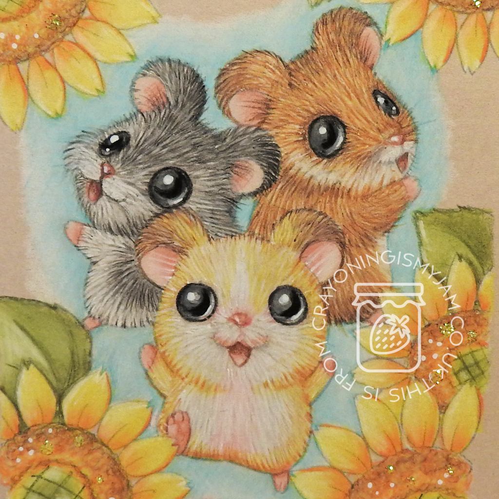I enjoyed colouring these chaps up and tried to make the lead hamster look a bit like the hamster my friend owns and loves.