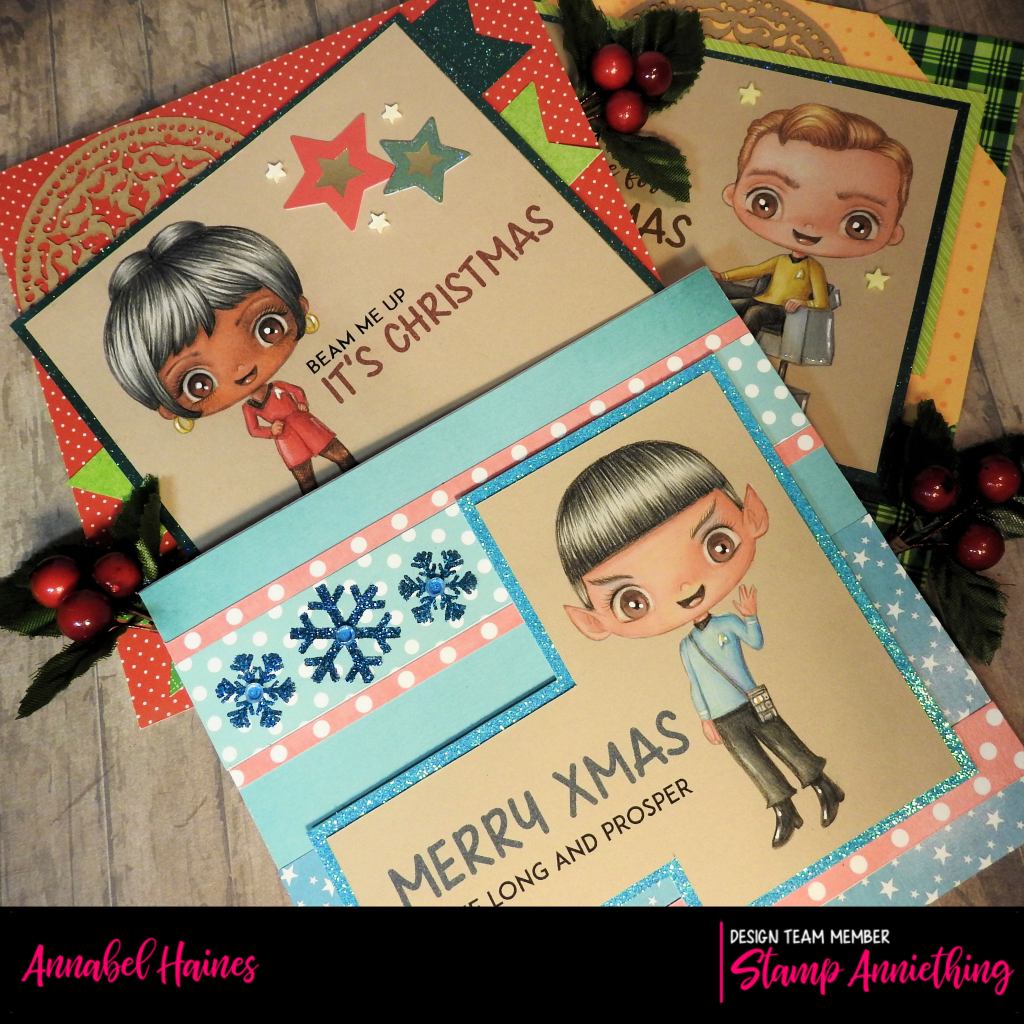 Thanks for joining me for quirky trekkie xmas moment! I enjoyed working with these stamps, and need to let you know that there are cool dies and stencils in this release too!! I hope to get my hands on them eventually, let’s hope Annie makes it so!