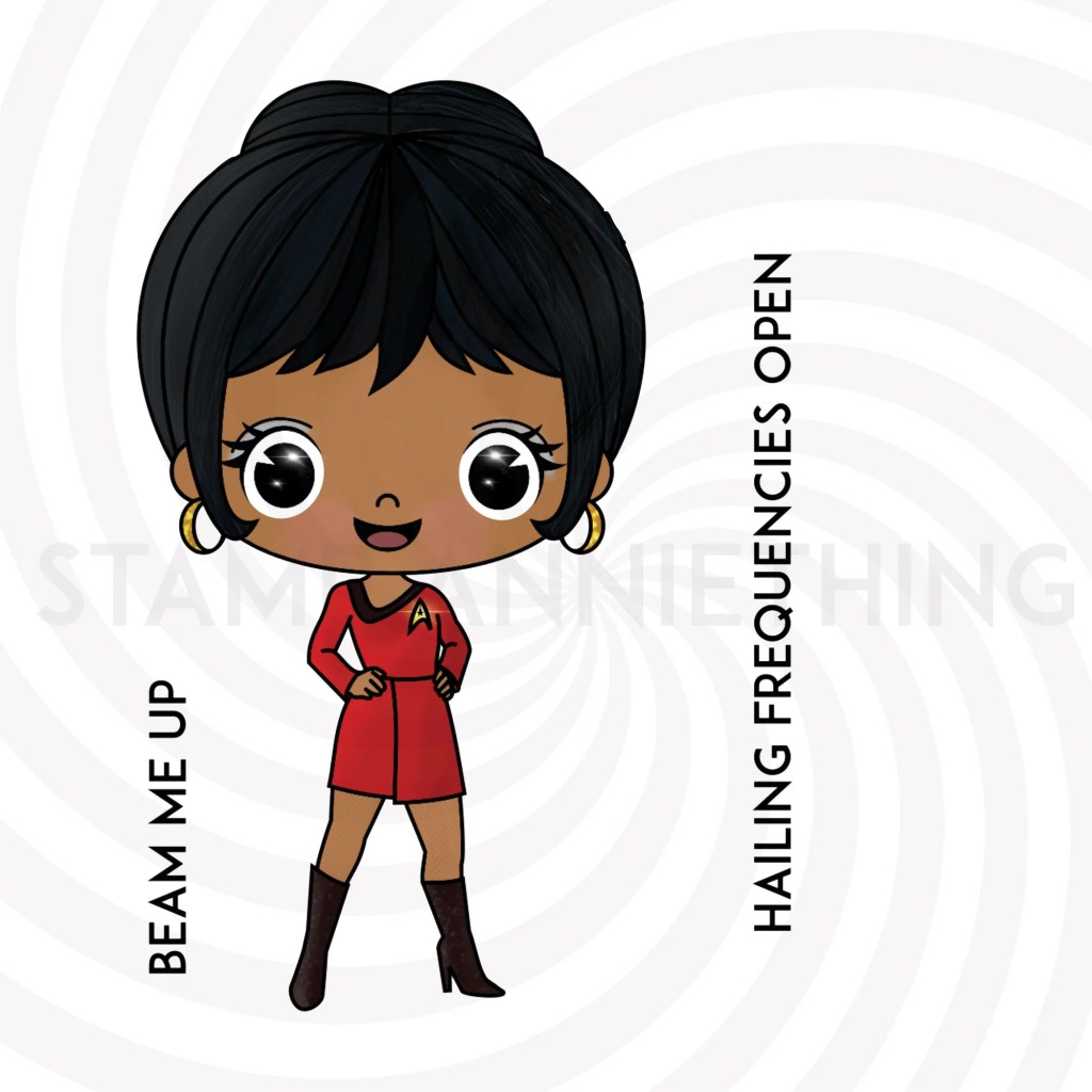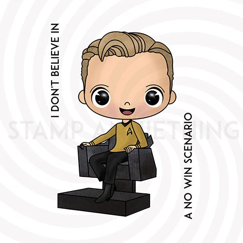 Got my hands on these stamps and couldn’t wait to use them! And yes, I went all Christmas about it! This is Uhura Hailing Frequencies, James I don’t believe in a no win scenario and Spock Live Long and Prosper.