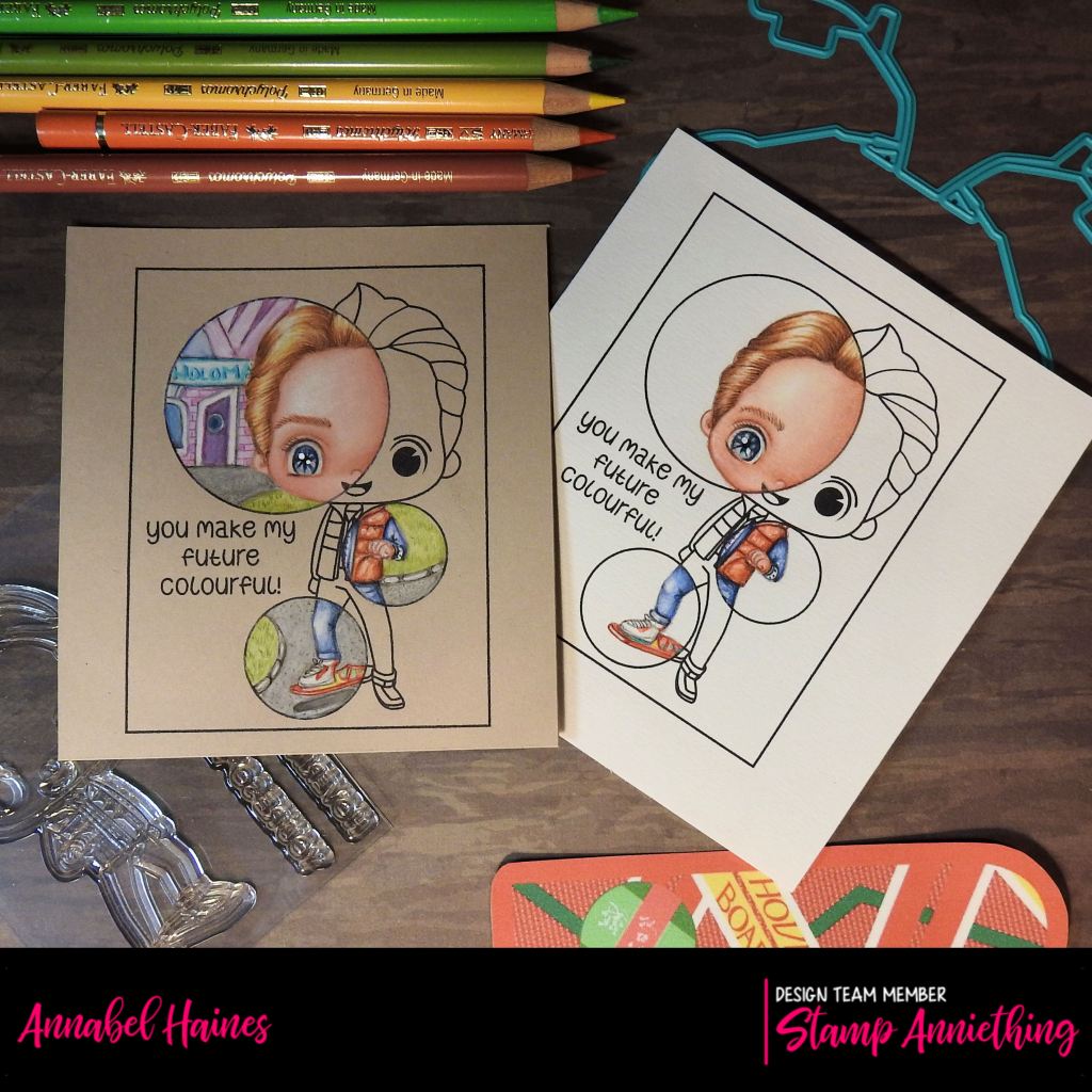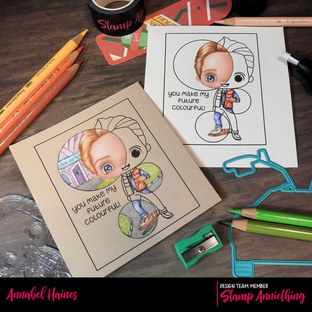 I popped online to get some refence photos to help inspire the colouring. I was aiming for the Future Set to be behind Marty on the Kendall Manilla version! It was quite hard to get a good likeness for the colour of his quilted jacket, it seemed to be “inbetween” colours, lol.