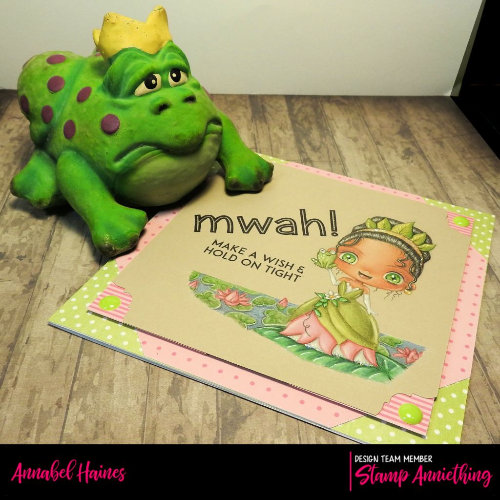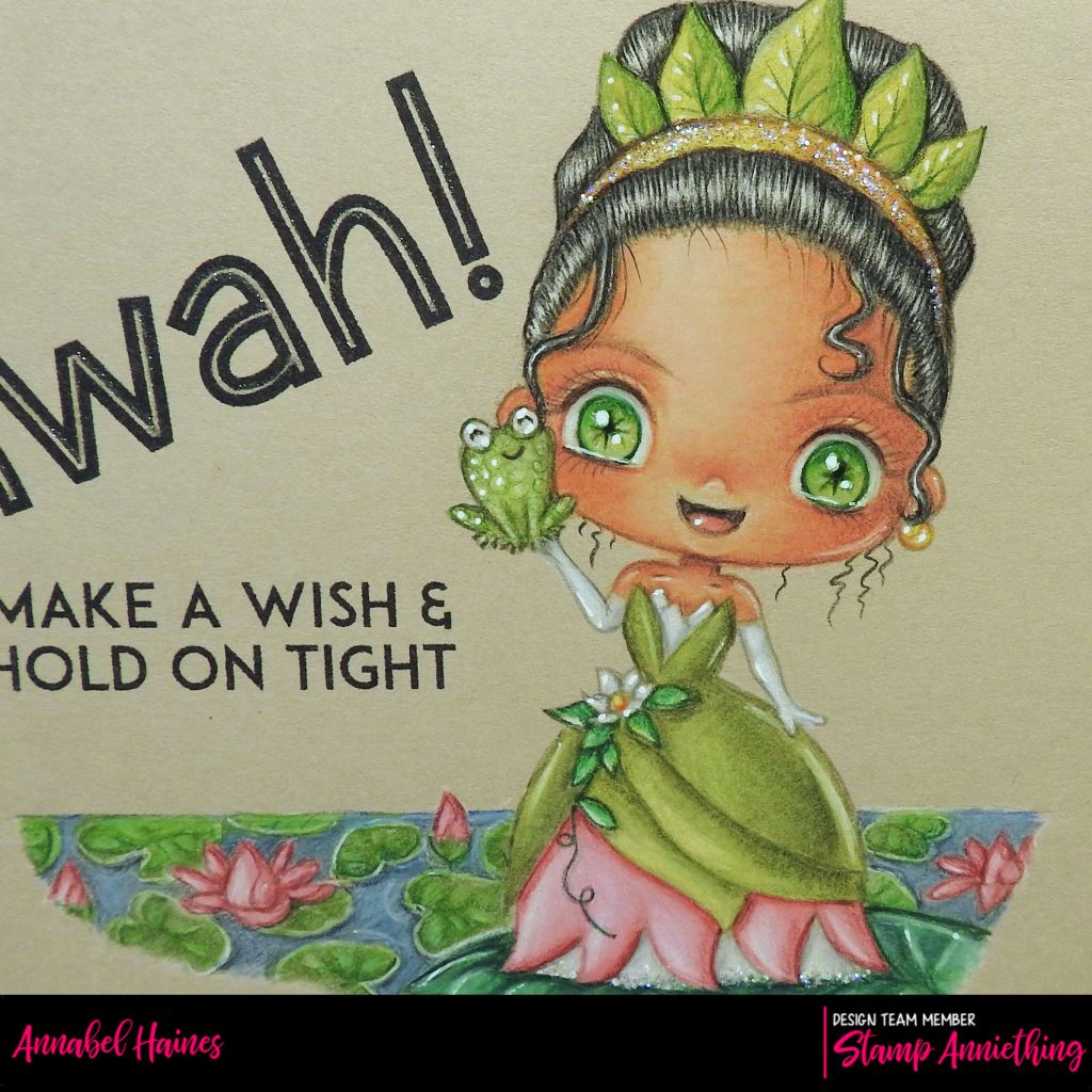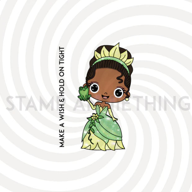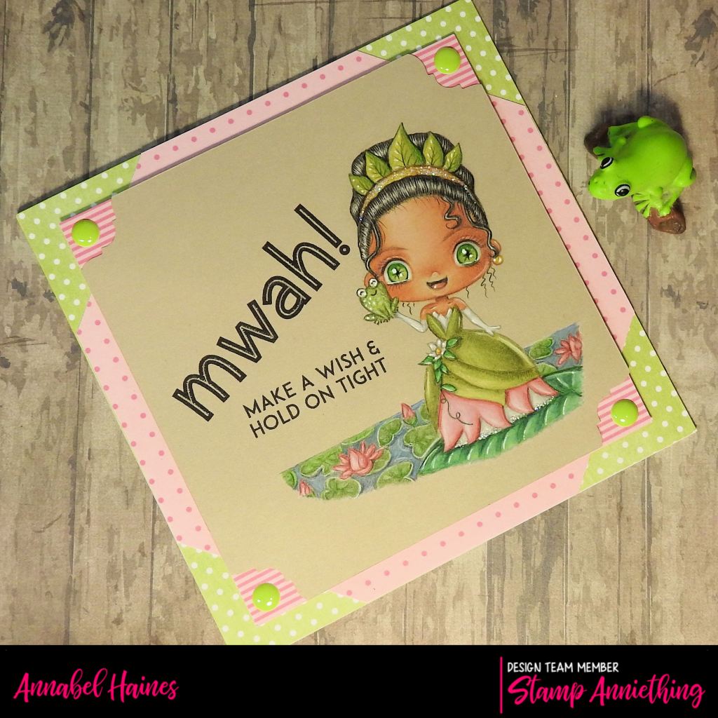 This is Tiana – Make a Wish and Hold on Tight! And if it suits your project idea, she also comes with a easy-life outline die! I didn’t use it this time, I printed her straight onto my topper with text. I added a Mwah but the other text is from the stamp.