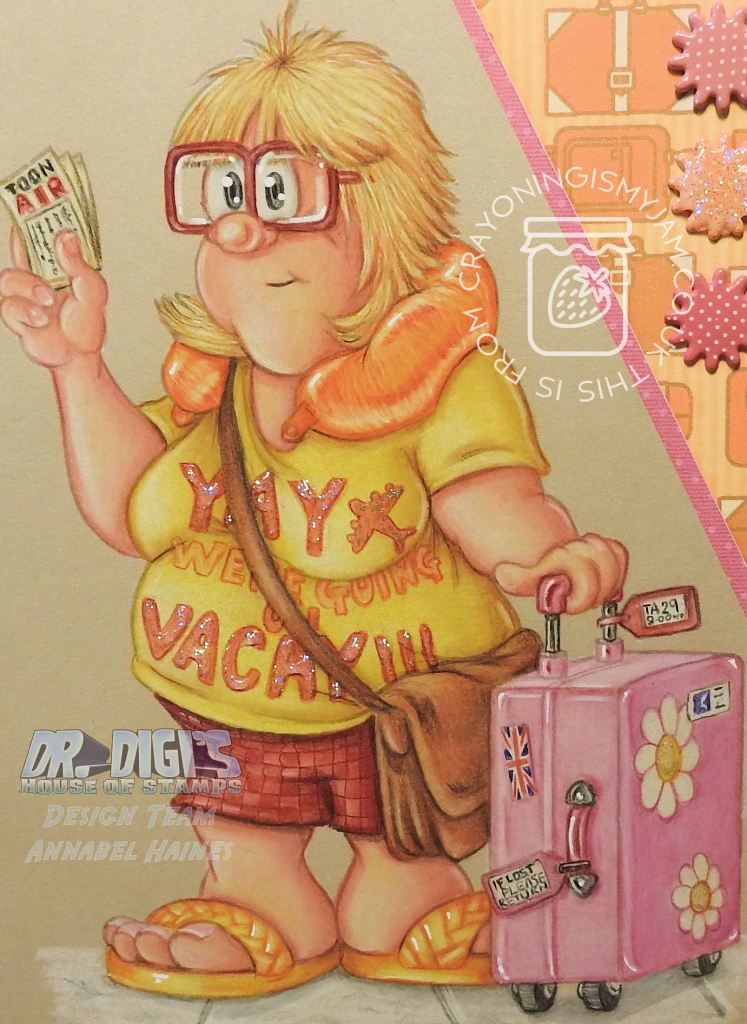 This is Cancun Cankels Karen setting off for her holibobs! As normal is polychromo pencils and some highlights using white posca pen.