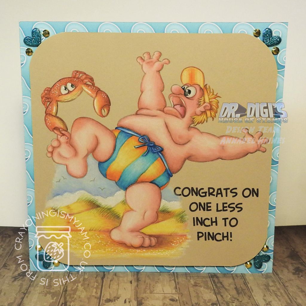 Friday again and this is a cheat! I actually coloured this early 2021, when I was going to make a video on skin colouring and this was the stamp I chose! However…. so much time has gone by that I don’t colour the same as this anymore, it’s like a time travelling card with my old ways of colouring! lol. This is Pinched Pinky Pete, from the past! 😀