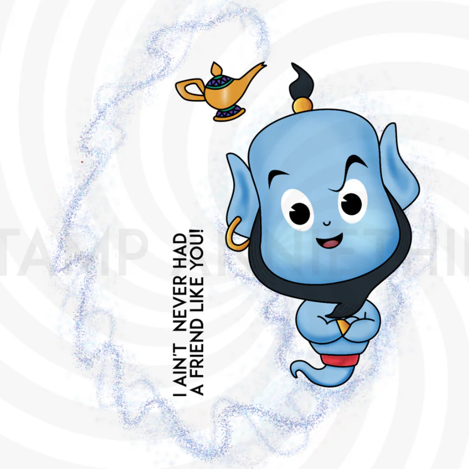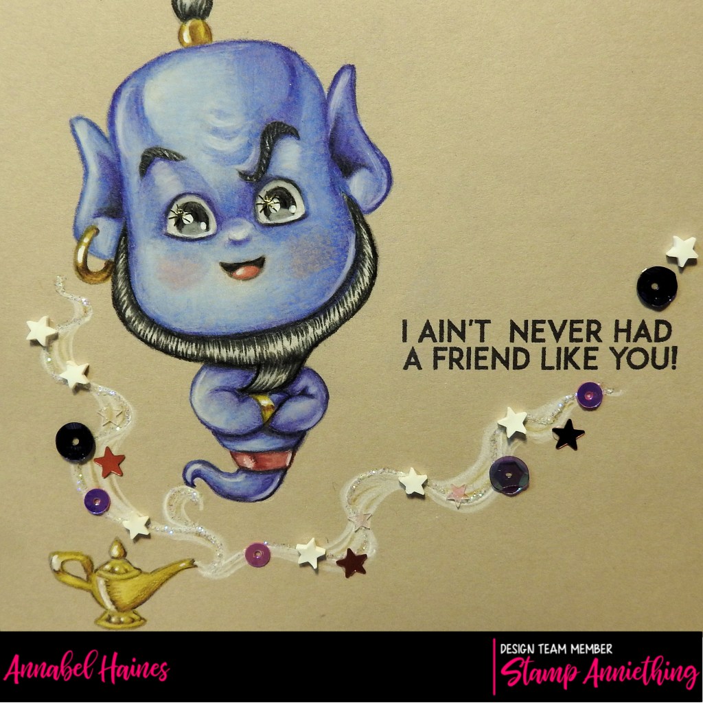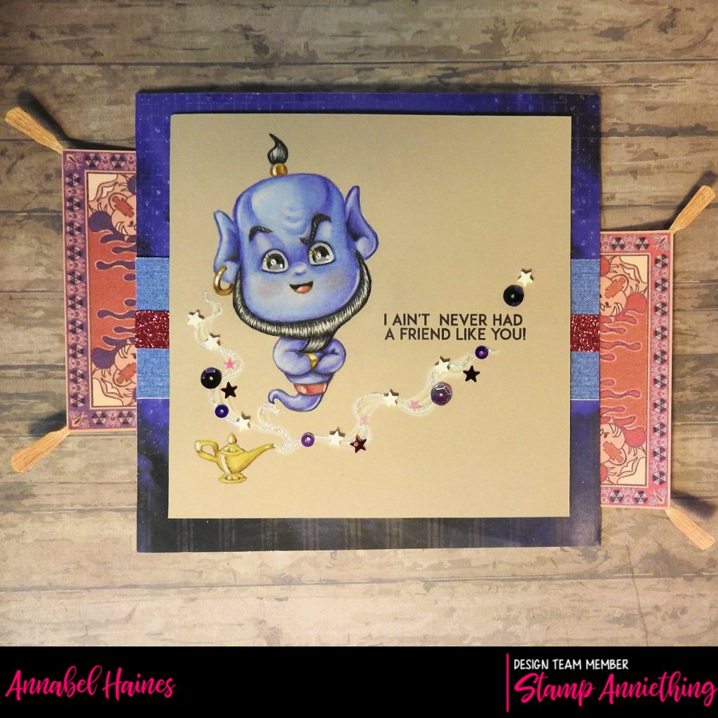 Sharing part of the new Aladdin release from Stamp Anniething! This is the Genie – A friend like you, clear stamp! There are lots of lovely stamps, stencils and dies in the release. This Genie also comes with an outline stamp.
