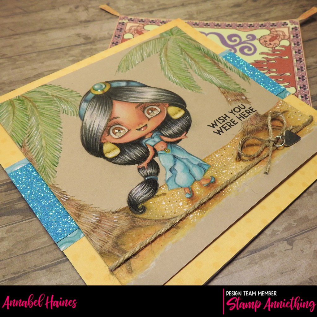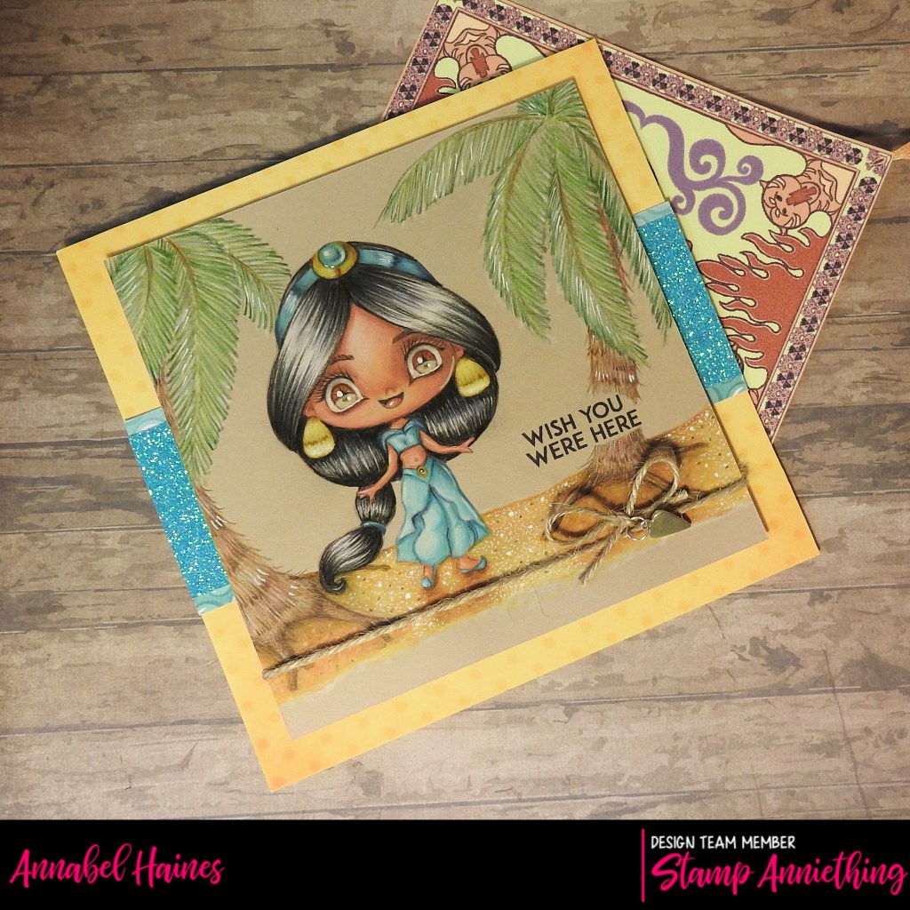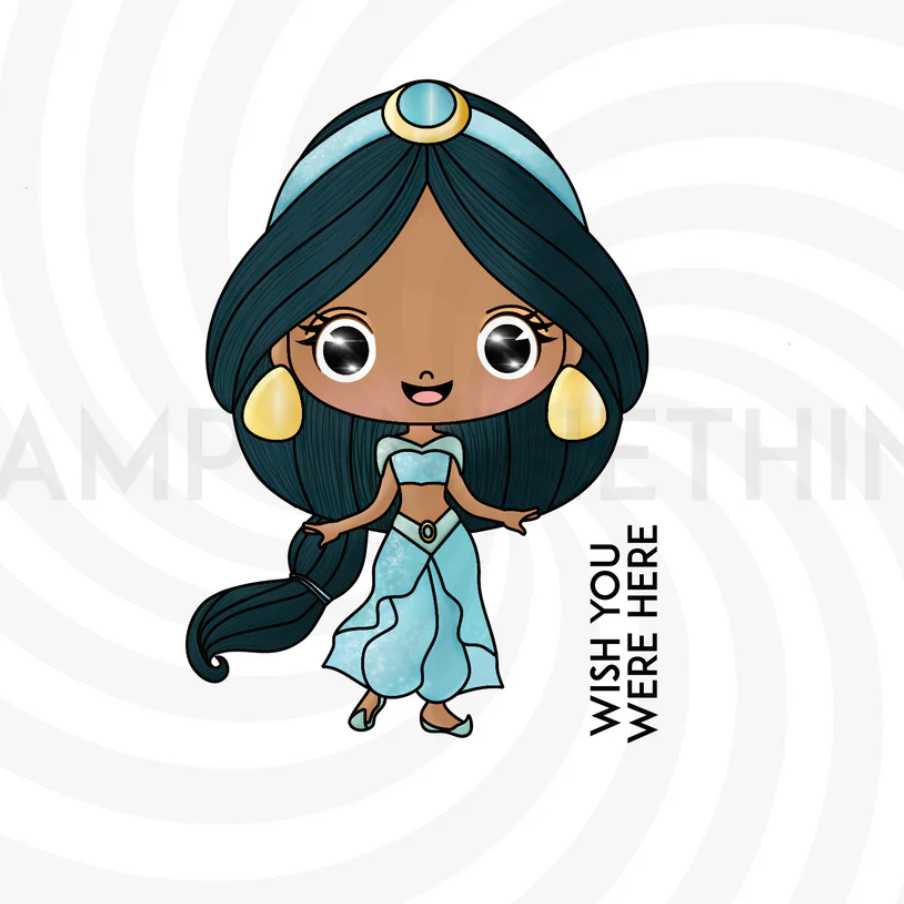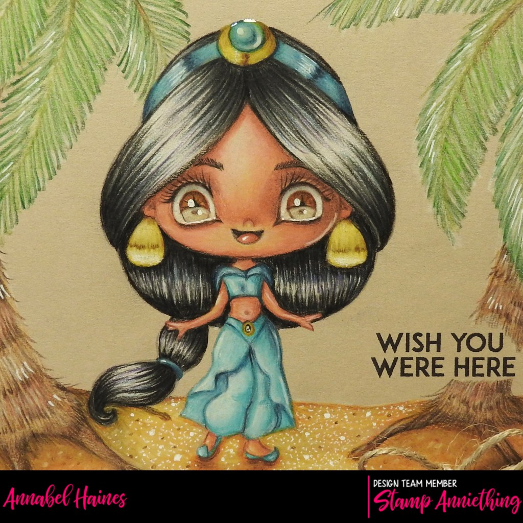 Sharing another part of the new Aladdin release from Stamp Anniething! This is the Jasmine – Wish You Were Here clear stamp! There are lots of lovely stamps, stencils and dies in the release. Jasmine also comes with an outline stamp.