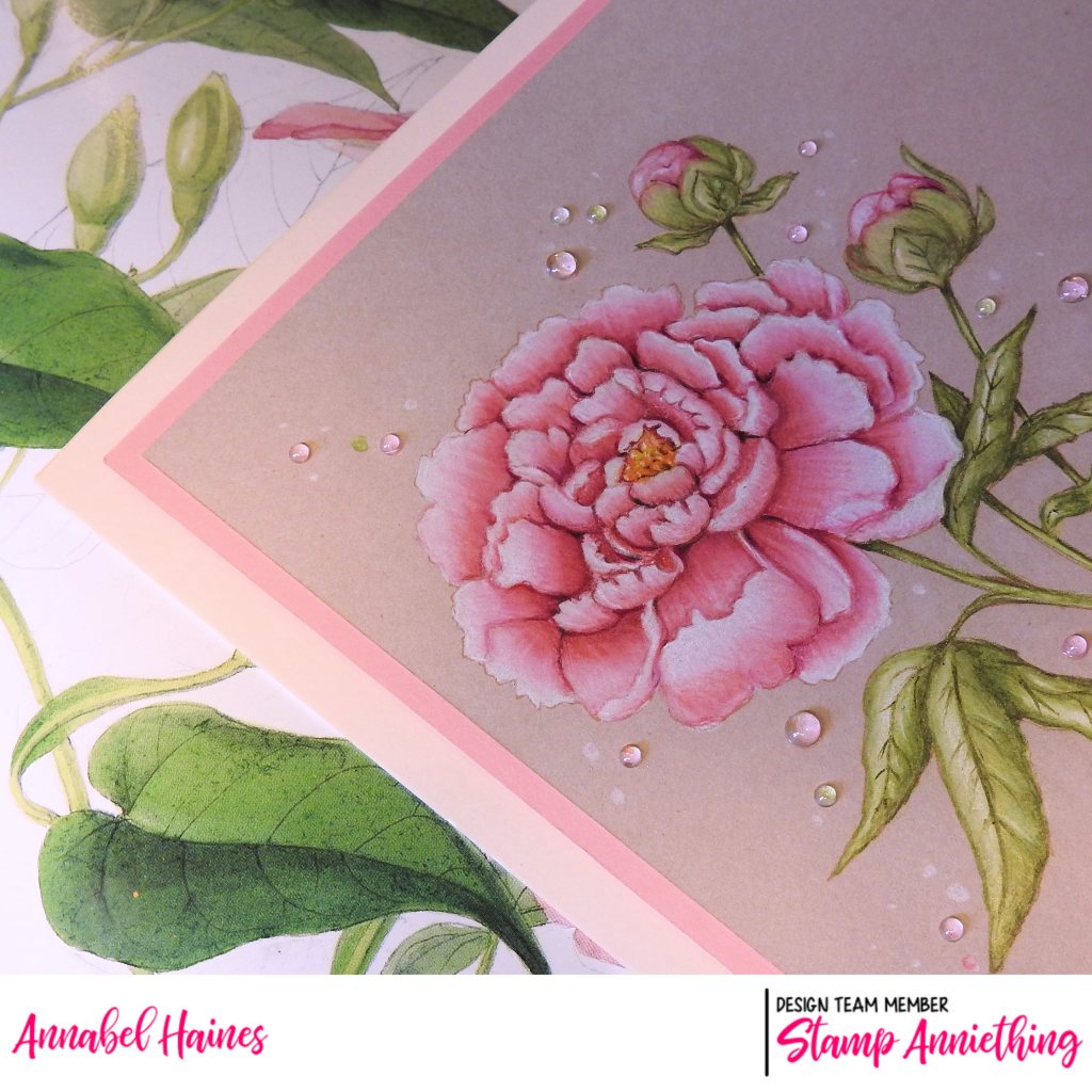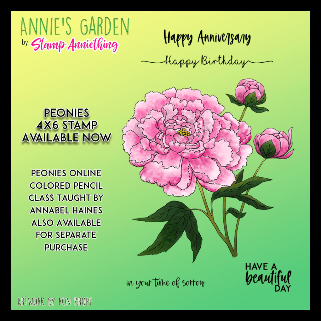 Finally I can share the exciting news that with the beautiful new Peony Stamp from the Annie’s Garden collection at Stamp Anniething, you can now also purchase my peony pencil colouring class! If you buy the stamp AND my class, the class will only cost you $10! (£7.55!) but without the stamp it is still only $15!