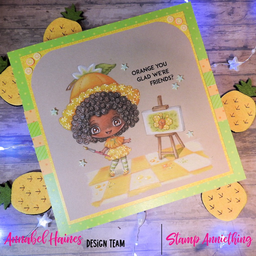 I layered her up on papers from the Spring Surprise and Stripes and Dots Paper Pads and added some clay sprinkles from a few different Stamp Anniething sprinkle sets. ( I know the lemons are from the Lemonade stand sprinkles! )