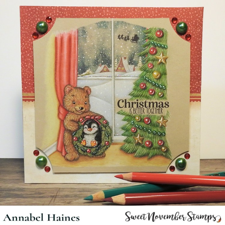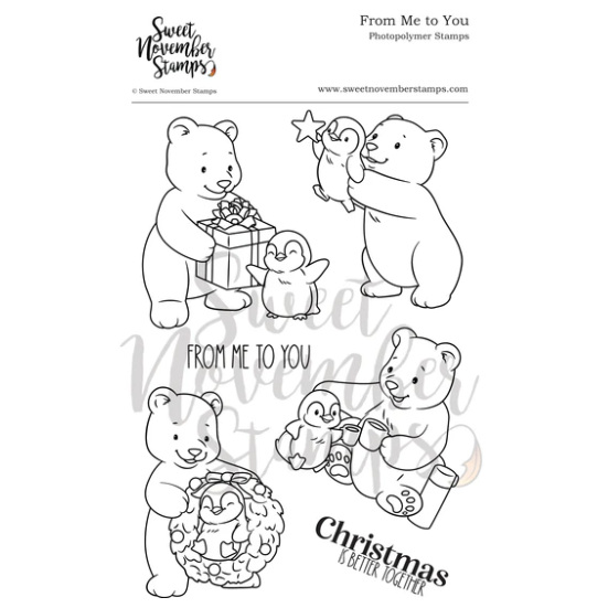 I am back with another card using the “From Me to You” Bear set from Sweet November Stamps! I have printed out all four bears to colour up, hopefully I’ll get to colour all of them before Christmas. I am always optimistic and ignore the size of my “to colour up” pile! lol.