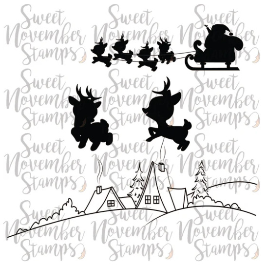 To make my background for them I used Gnome Home Holiday Scene Builder Set for the houses and trees from North Pole Friends Background Builder Set.
