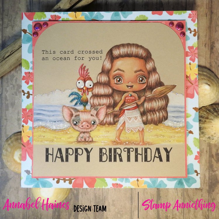 Here is the card I made a couple of weeks ago using Moana, Pua and Heihei from the set.