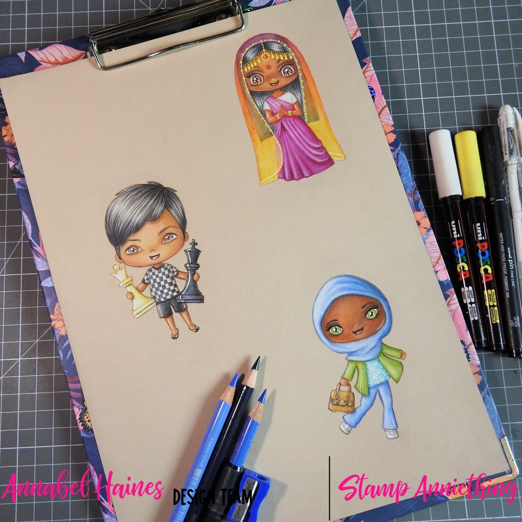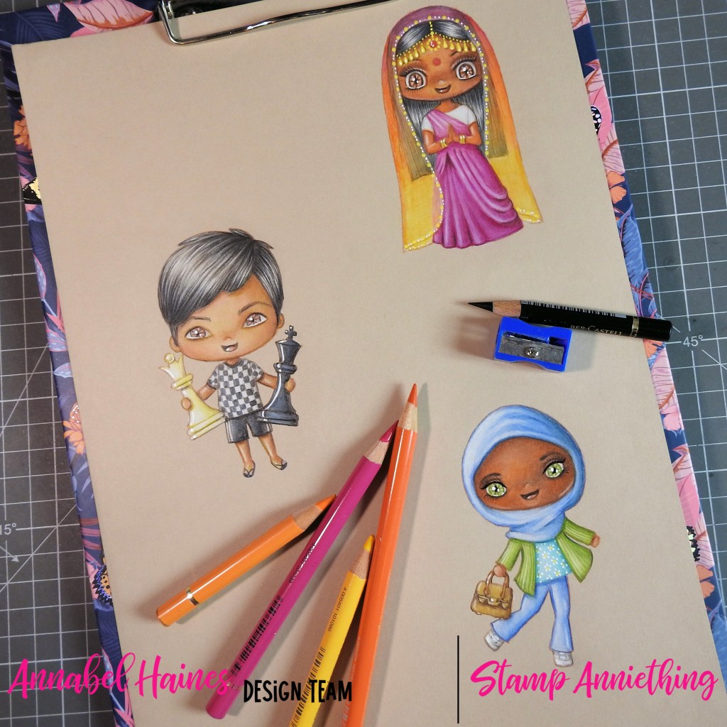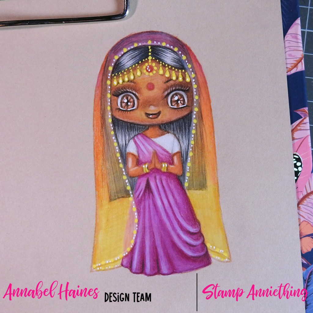 Sharing some WIP shots, need to finish them off and tidy them up and smooth out some blends still. Took some time to educate myself on the types of Islamic veils, how to spell and fold a saree and whether any human can have natural blue black hair melanin. When you are colouring, if there is an excuse to dive off and research something new, I think you should take it 🙂