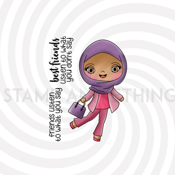 Here are the three stamps I was working with today! They are all currently available for just $3 including the co-ordinating die! From left to right they are Taani Balle Balle, Jameela Friends Listen and Liang Checkmate.
