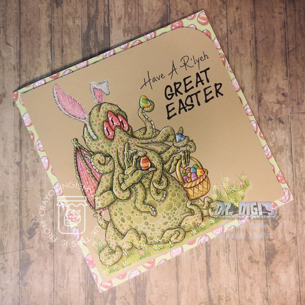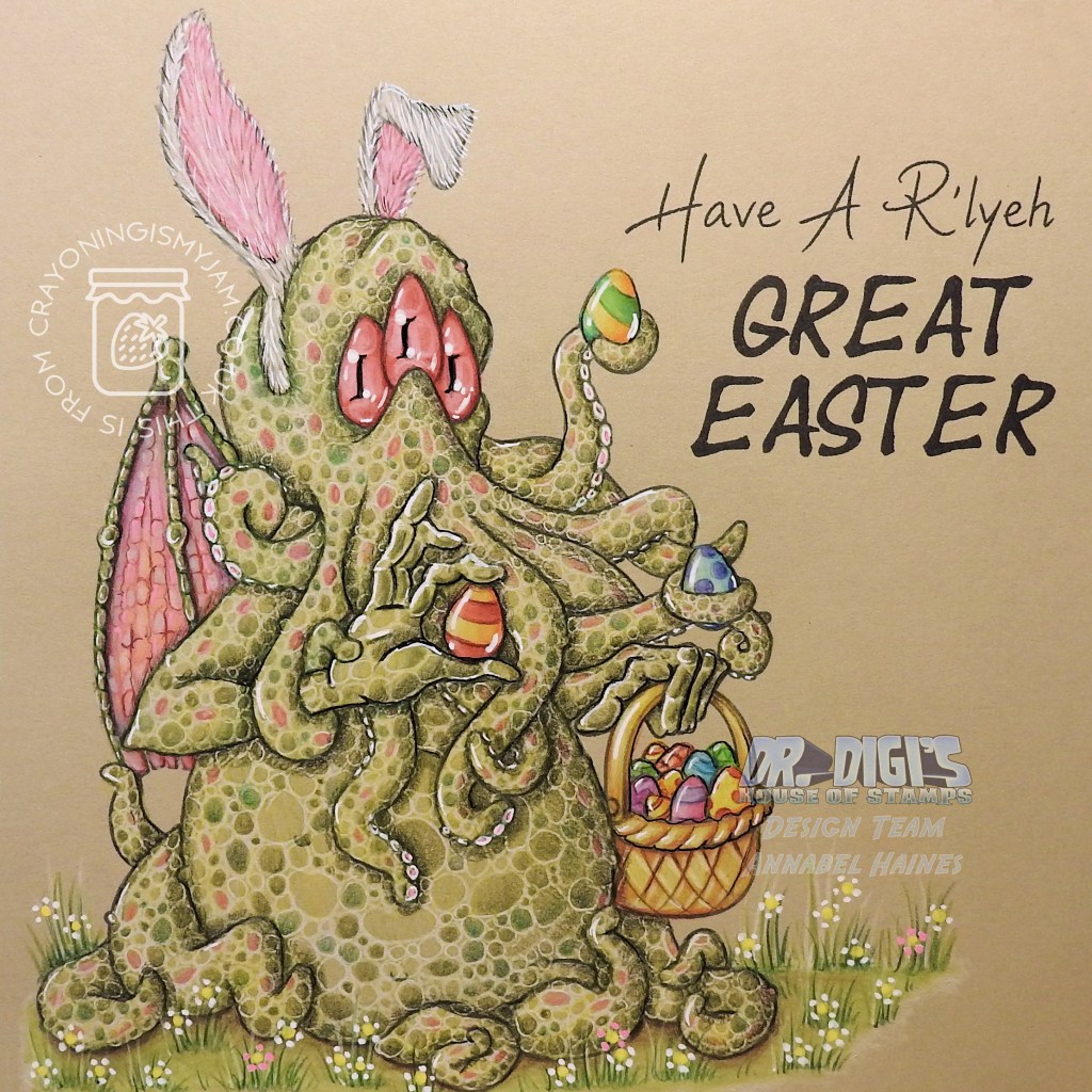 So, I set myself a little challenge, I wanted to colour up all the Cthulhus in the doctor-digi shop! It’s been a very long term challenge, finally achieved with Cthulhu the Easter Bunny!