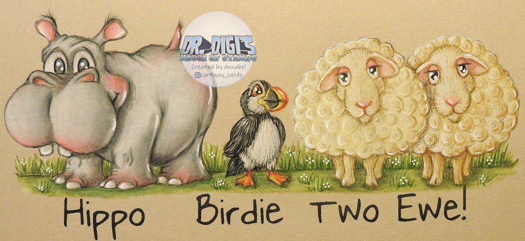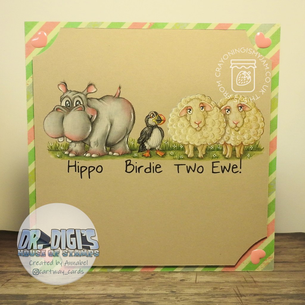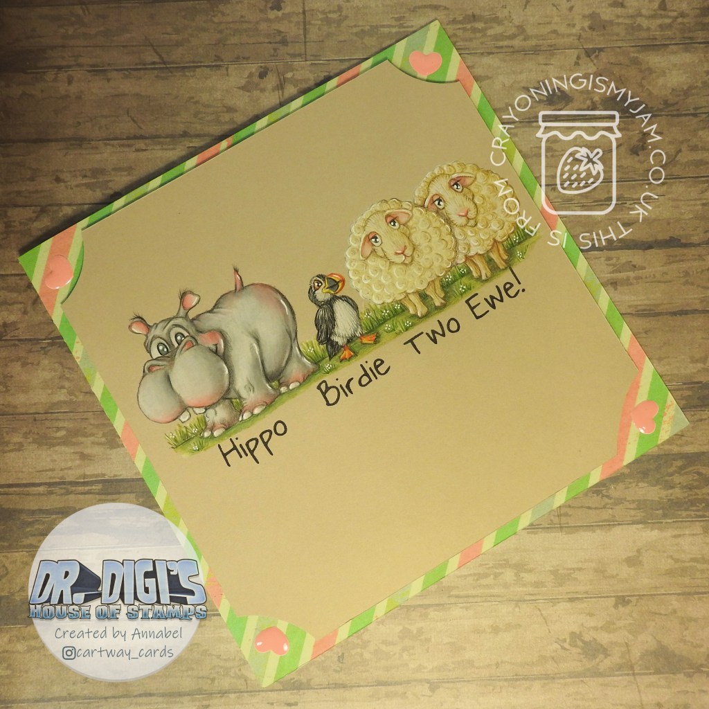 I used three digis A Hippo Called Hubert, Percy the Puffin and Flossy the sheep! I made my own sentiment to go with them.