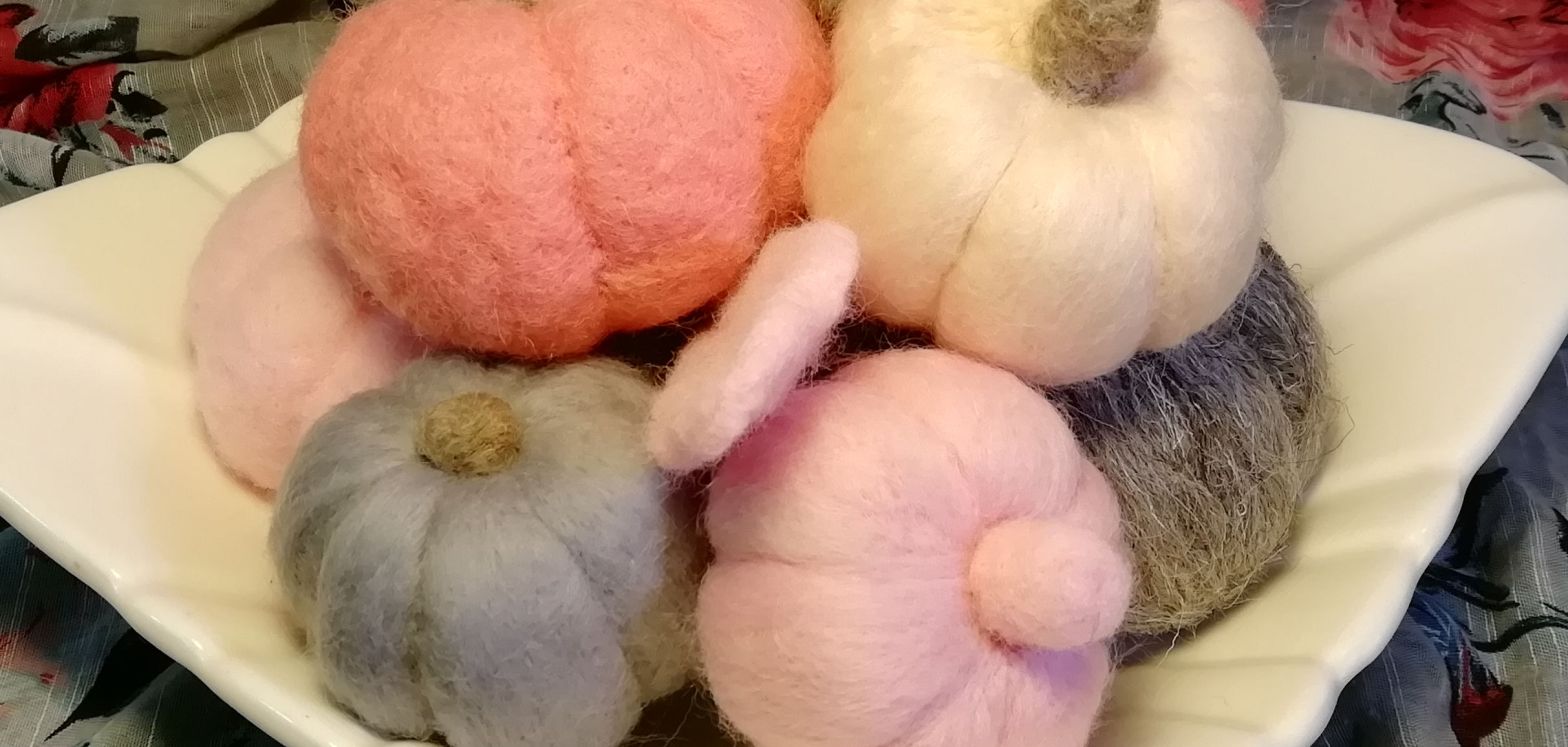 Another Halloween/Autumn felt order, this time for ten pink and grey pumpkins! They look kind of cool in pink! Hope she will be happy with them. Also finally an excuse to use my early SylvaC (falconware) Budgie Bowl, there is a cermaic budgie in the middle , you’ll have to trust me on that one.Continue reading “Pink Pumpkins!”